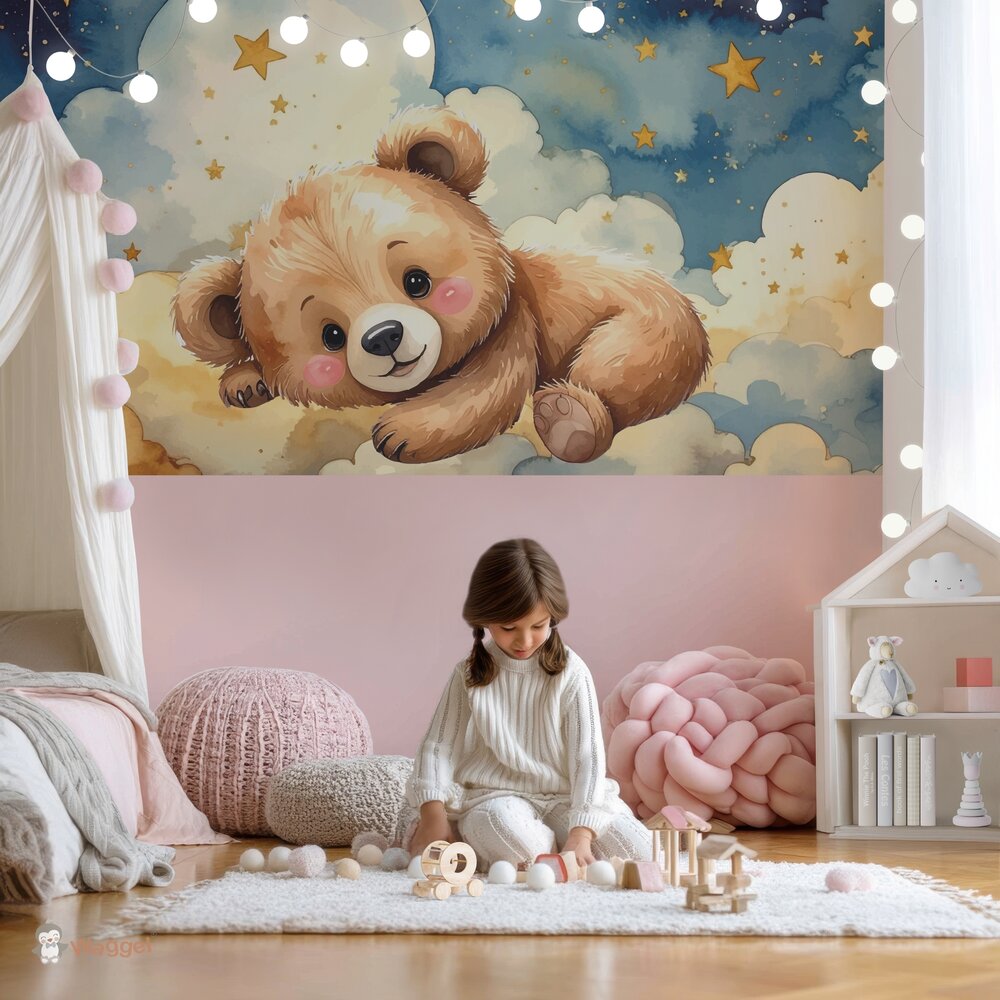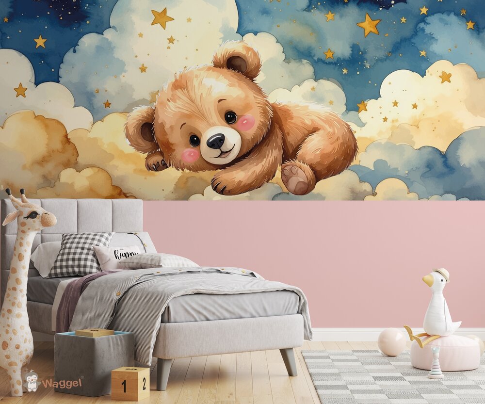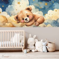 Behang Happy Tails beertje in de wolken met gekleurde onderzijde